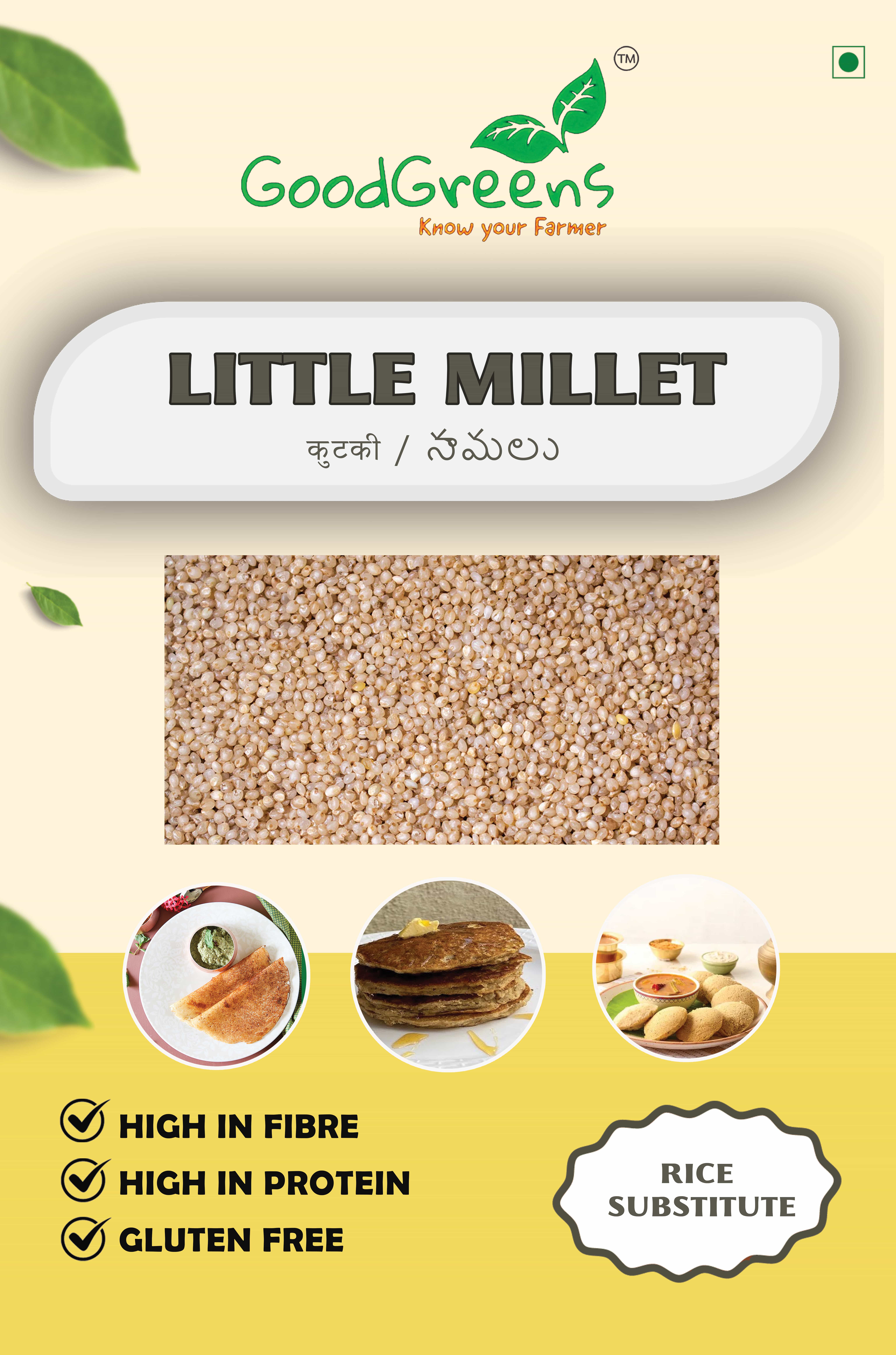 Every 100g serving of our mouth-watering unpolished Little Whole Grain Millet delivers 341kcals, 13.8g of protein, 67g of carbs, 9.8g of fiber, 5.2mg of iron, and 2.5mg of zinc. Our processing techniques guarantee that all our grains are 100% unpolished. Supergrains like millet improve your body’s ability to absorb nutrients, promoting better gut health, regulating blood sugar, and leaving you feeling fit, light, and energetic. Millets are naturally resistant to pests due to their husk (shell). Soaking is required for a minimum of 6-8 before cooking to make cooking and digestion easier.